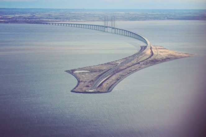 Öresundsbron ser lite häftig ut så här från ovan, men jag tycker inte om att åka den vägen, varken med tåg eller bil. Dock bra att den finns. :-)