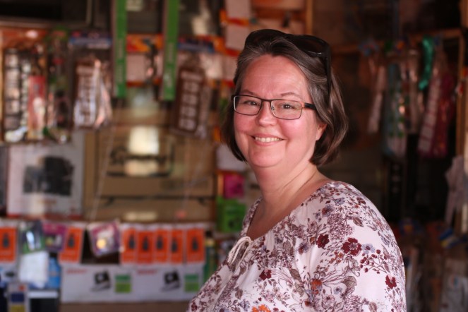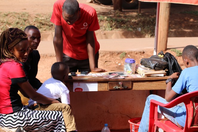 Men han har en annan sort också. Denna sorten finns dock bara med 2 GB. Jag provar ett sådant. Det funkar! Jag fotograferar en bild av människorna utanför affären. Vår guide testar kameran och fotograferar mig i affären och bilen med min familj i. Jag får 5000 tanzanianska shilling tillbaka på de tio dollarna för detta kort. Jag frågar om jag kan köpa ett till. Det kan jag inte. Detta var det sista!