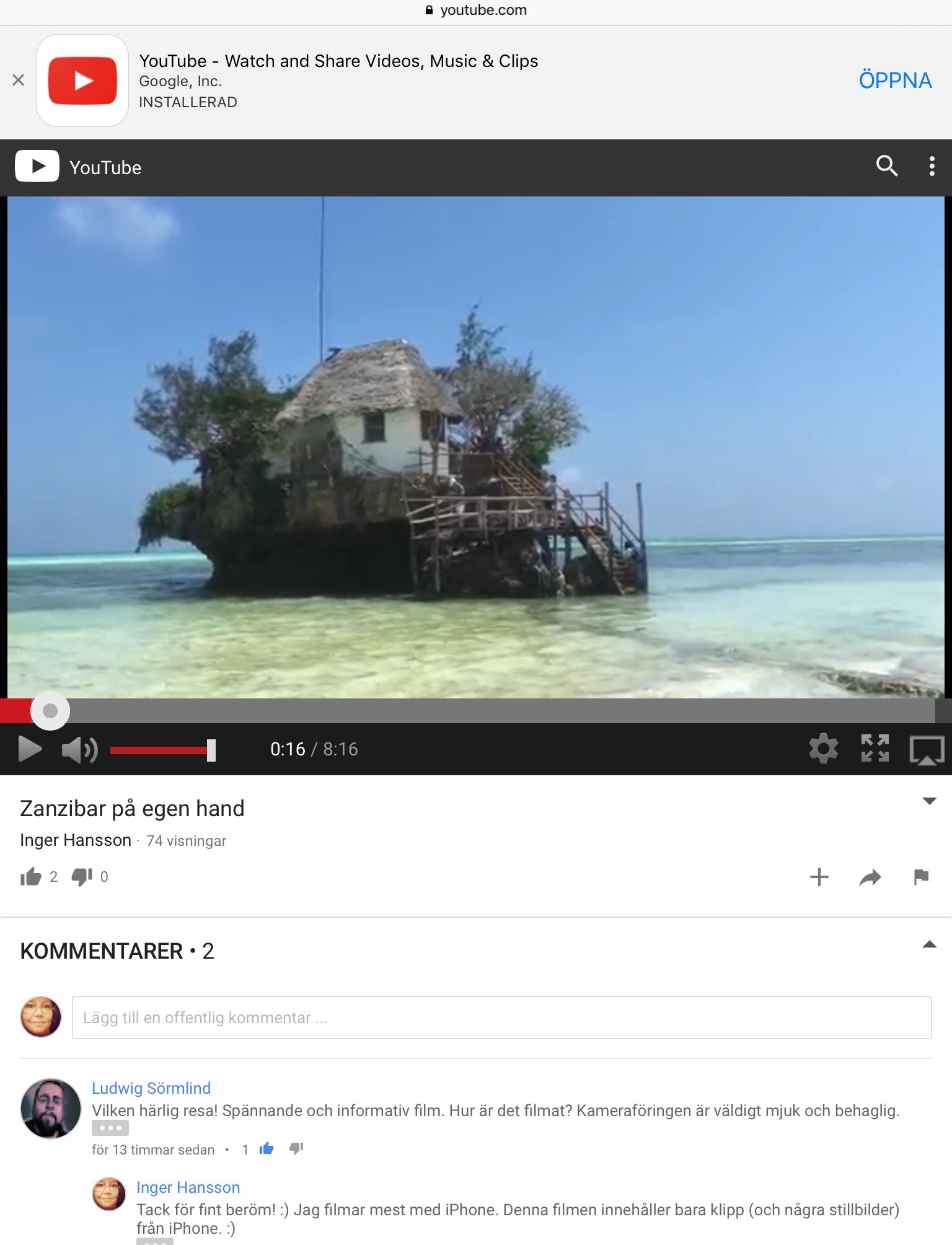 Idag har jag ägnat en del av dagen åt att leta efter var i Youtube-appen jag kan svara på kommentarer. Detta sedan jag fått både ett mejl, en push-not och ett meddelande inne i själva appen att jag fått en kommentar på min senaste film, men jag hittade inte var jag kan se och svara på kommentarer. Det märkliga är att jag senast häromdagen kommenterade ett klipp via paddan, då på kanalen 4 000 mil, och kunde nu inte hitta den kommentaren heller. ”Var klickar jag?” var frågan jag ställde mig.