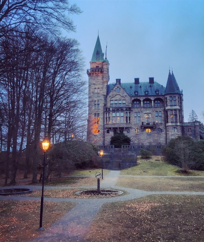 Att hitta ett slott bara så där. Fint med det upplysta slottet och lyktorna i skymningen.
