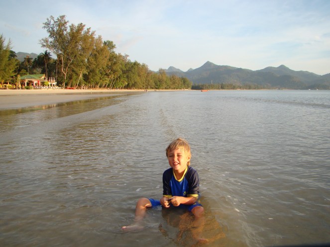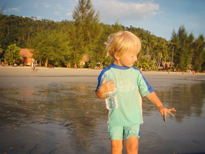 Vi var där i januari 2009 på vår resa jorden runt. Barnen var då 3 och 5 år. Vi tog buss från Bangkok. Bussen tog oss till färjeläget där vi köpte biljetter till båten. Sedan blev det tuktuk till White Sand Beach. Där trivdes vi inte så bra. Så här skrev jag på bloggen då: