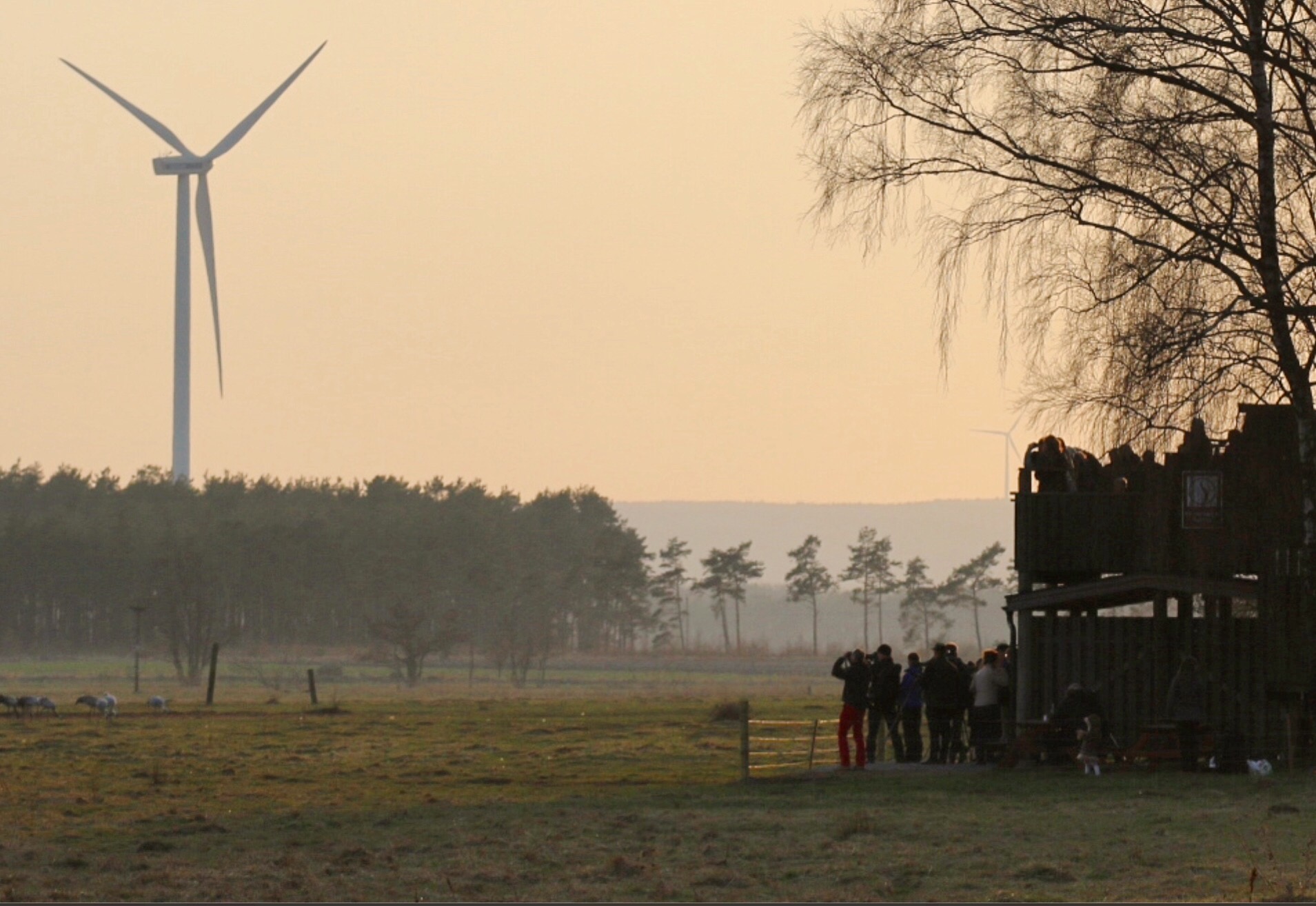 En gång för många år sedan, när jag deltog i en naturfotokurs som leddes av den numera framlidne Björn-Eyvind Swahn, besökte jag Hornborgasjön för att fotografera trandansen där. Vad inte alla vet är att det numera finns en precis lika bra plats för trandansskådning på betydligt närmare håll för oss som bor i Blekinge och Skåne. Den här lördagskvällen är vi här. Det är den andra helgen i årets flyttkalas. Jag fotograferar dansande tranor, en stork, fågelskådare och solnedgången.