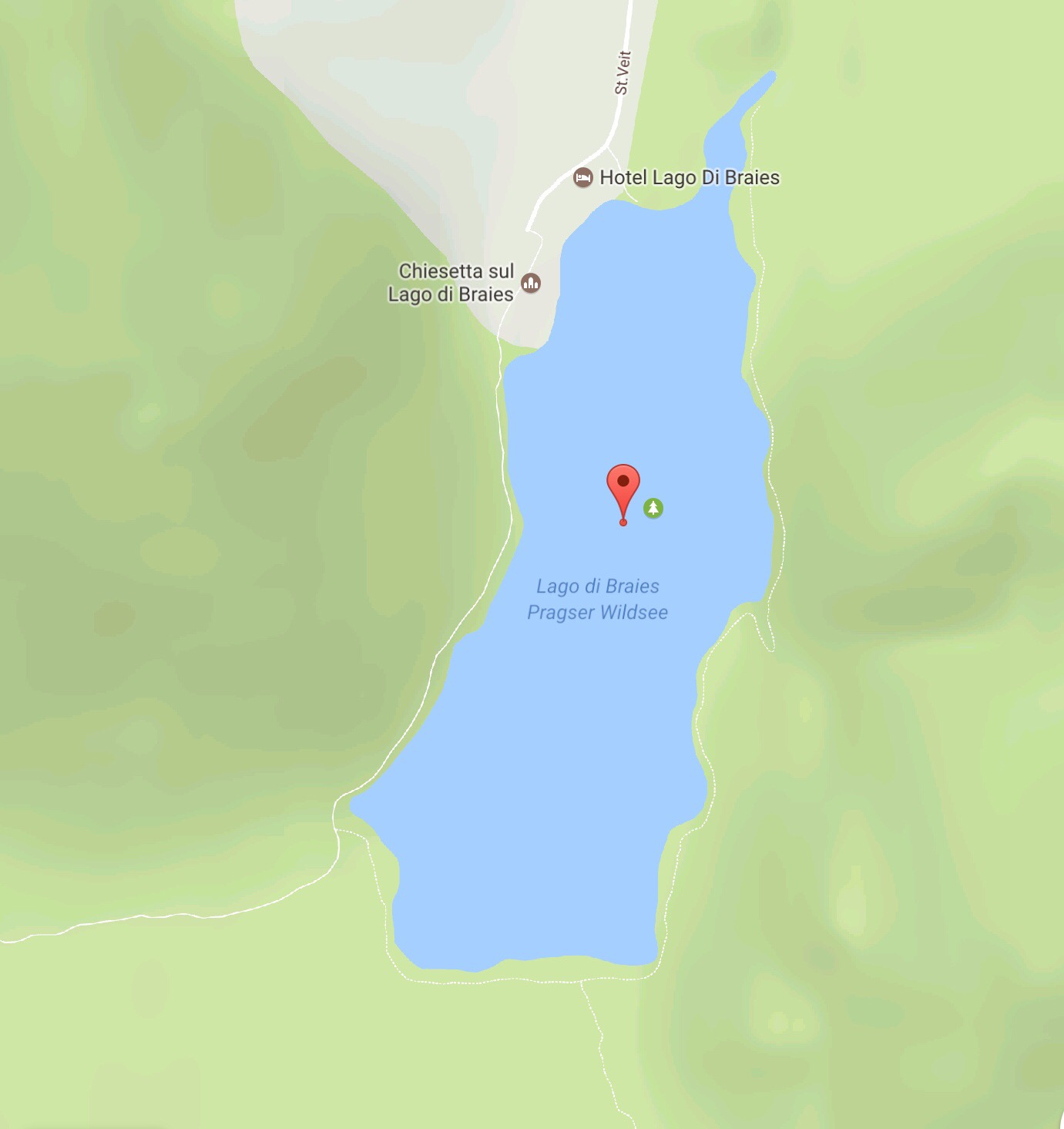 Vandra vid vackra sjön Lago di Braies / Pragser Wildsee i Dolomiterna – karta mm