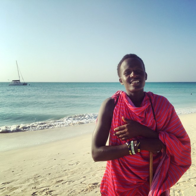 En ung man på stranden vid Kendwa.