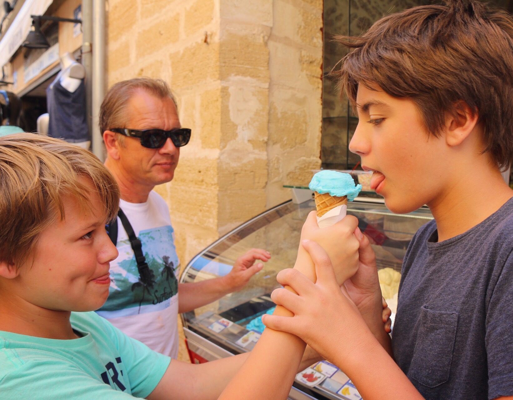 Efter lunchen tog vi varsin glass, där Albin, minstingen valde smurfsmak(!), Anton tog vattenmelonsmak och jag och Anders valde pistage.