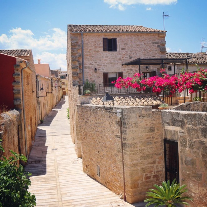 Gamla medeltida städer med ringmur är väldigt mysiga, tycker jag. Som Visby i Sverige eller Carcasonne i Frankrike. Gamla Alcúdia är mindre än de båda exemplen, men icke desto mindre mysig. Ringmuren runt gamla Alcúdia började byggas i början på 1300-talet och tog 100 år att färdigställa. Ringmurens viktigaste funktion var som försvarsanläggning mot pirater och främmande makter men den underlättade också skatteindrivningen genom att de bönder som kom till staden för att sälja livsmedel och andra varor var tvungen att passera portarna där staden kunde ta ut tullavgifter.