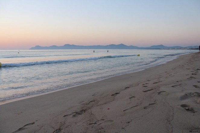 Det misslyckades på första försöket. Att gå upp klockan sex på morgonen för att se soluppgången vid Playa de Muro på Mallorca. Men på andra försöket lyckas det. Vi kommer upp och ut i den tidiga sommarmorgonen.