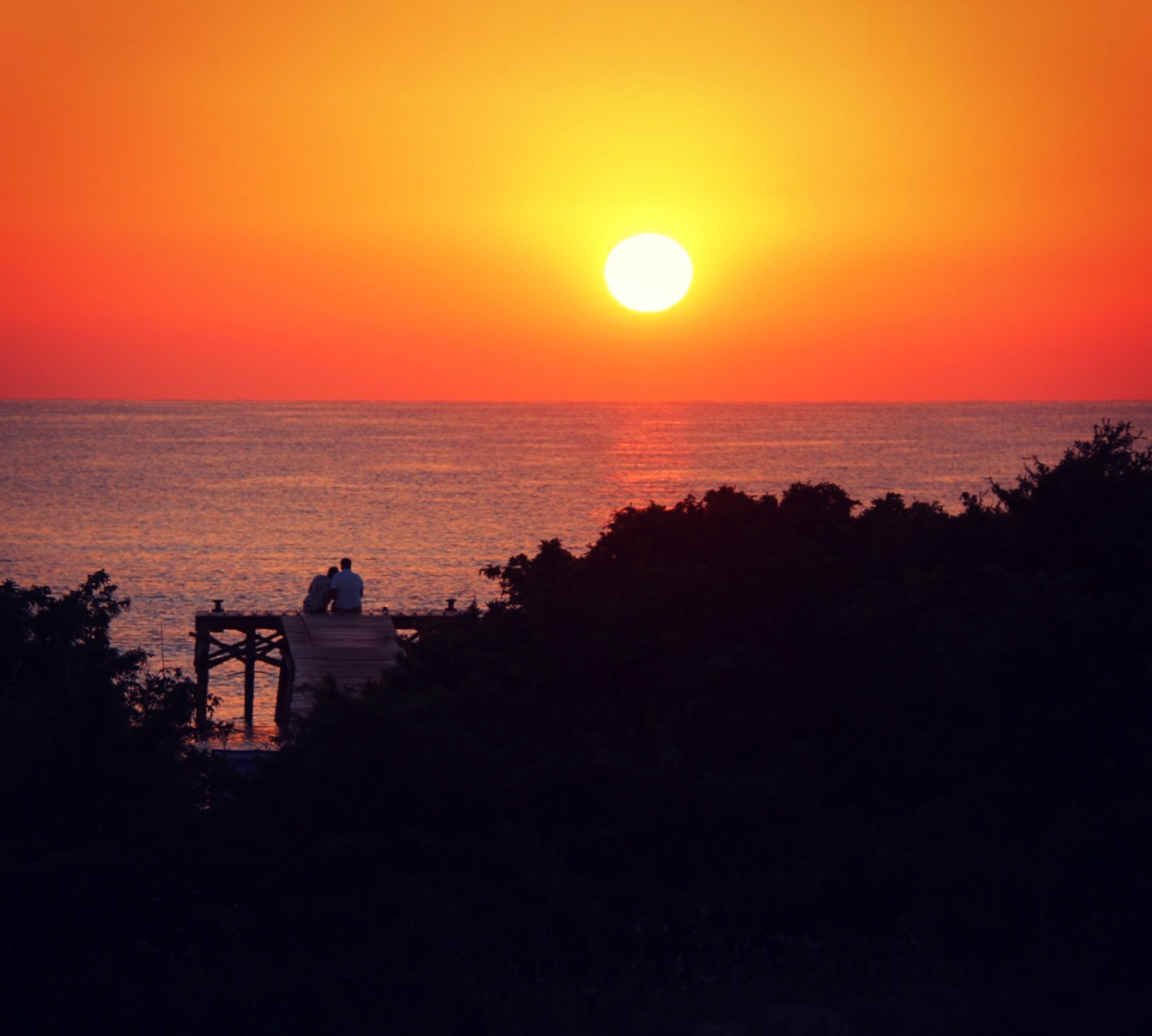 Solen går upp. Jag får mina bilder. Anders får en puss. På vägen tillbaka mot rummet vänder jag mig om. Bortanför några buskar ser jag paret på bryggan som sitter kvar och tittar en stund till.