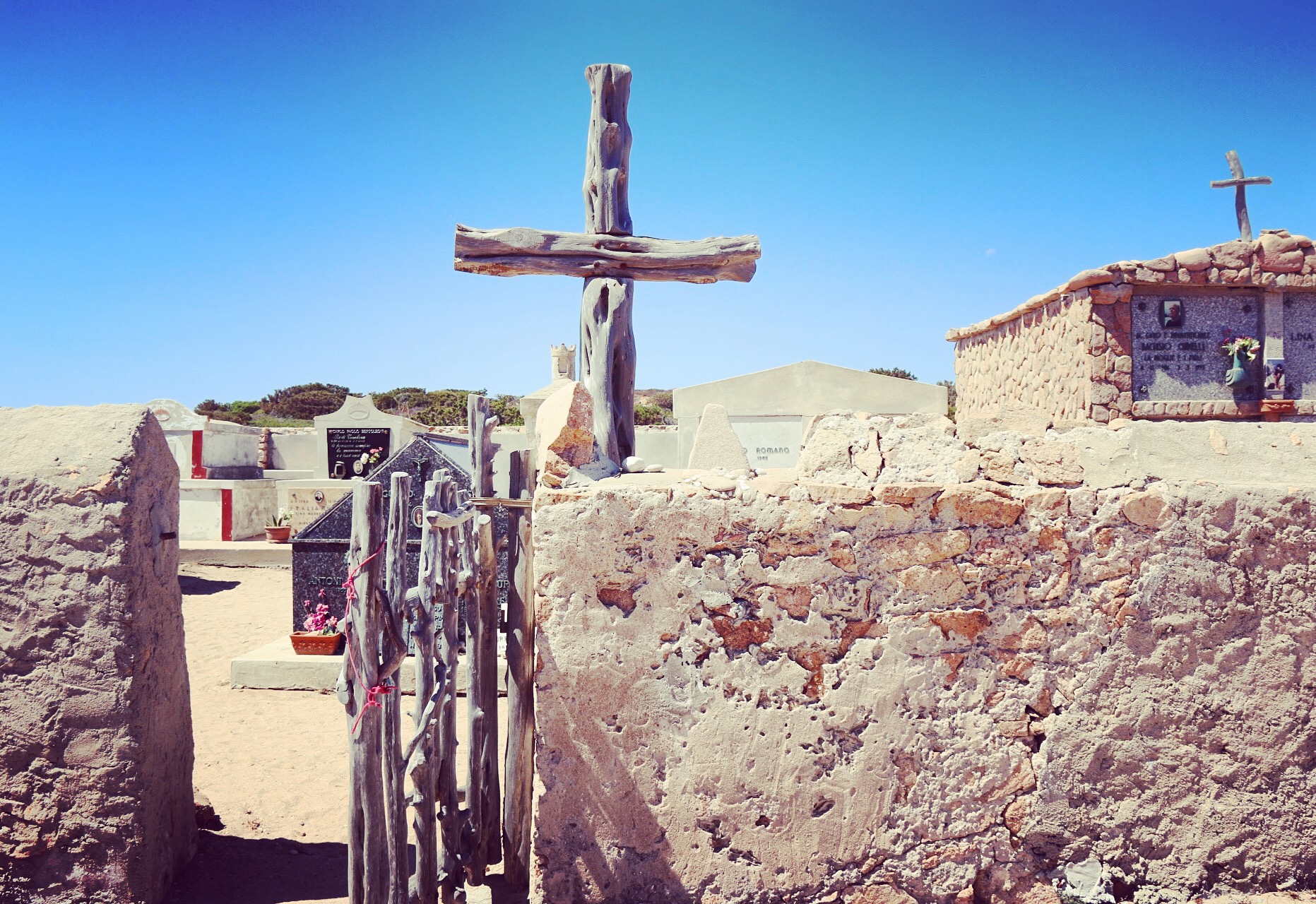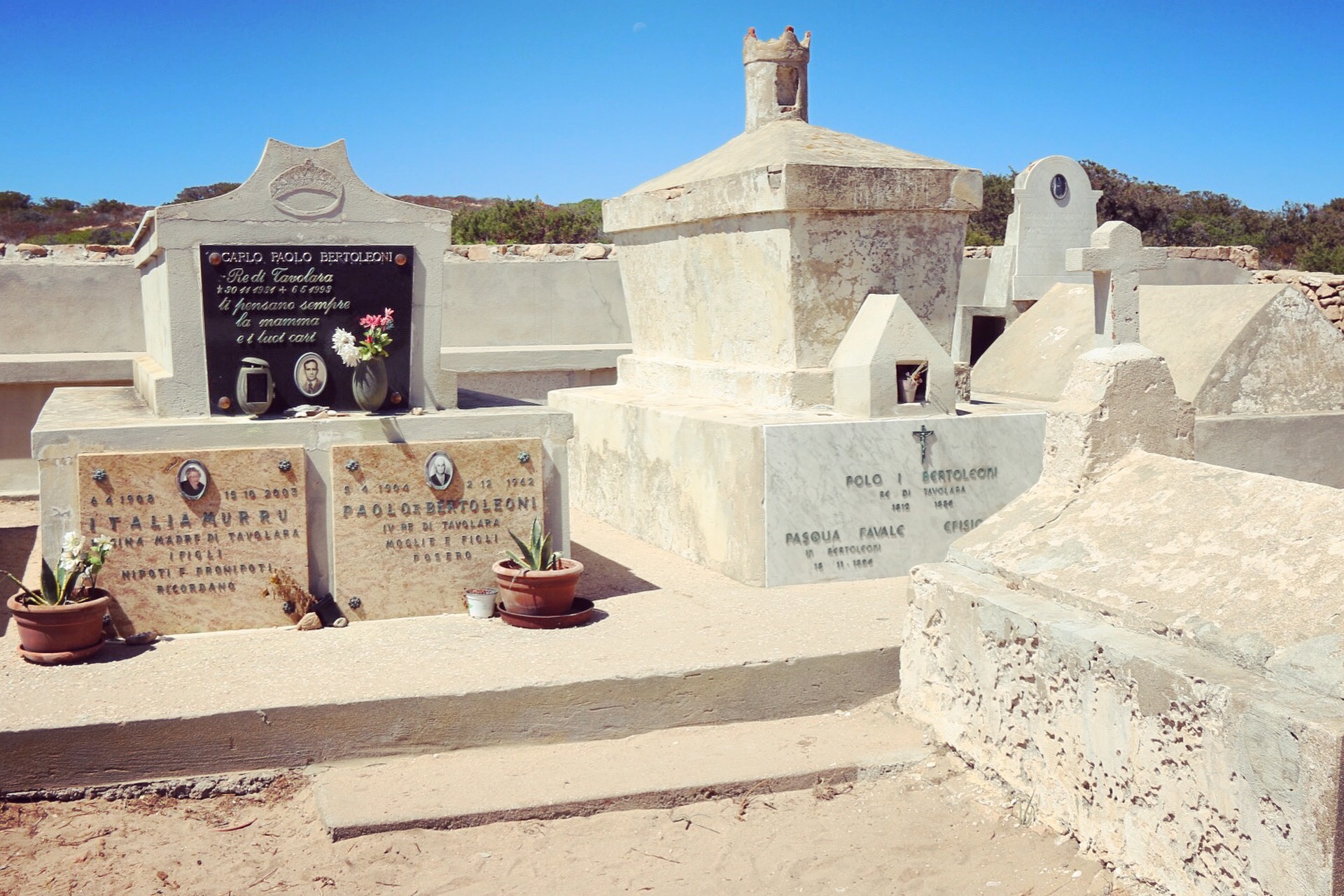 När vi är på Sardinien gör vi en båtutflykt till en badstrand med söderhavskänsla. Inte anar jag då att ön där stranden ligger en gång var ett eget konungarike. ”Världens minsta” till och med. Det upptäcker jag först när jag hemma i Sverige googlar för att hitta information om den kyrkogård jag sett och fotograferat på ön.