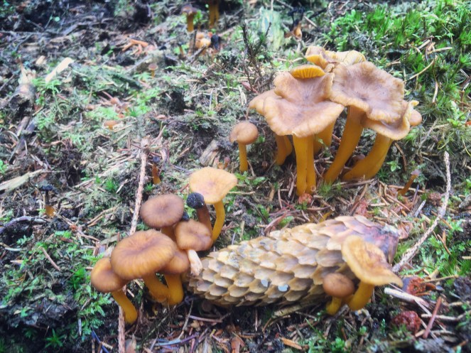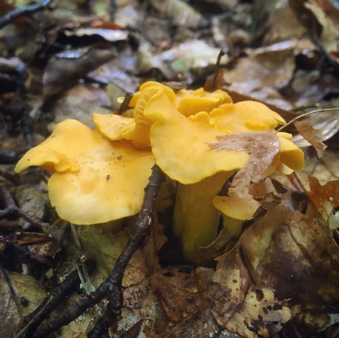 Förra veckan hittade vi en hel del gula kantareller på ett ställe vi kännt till i flera år. Idag återvände vi och hittade några till, som vuxit som svamoar ur jorden.