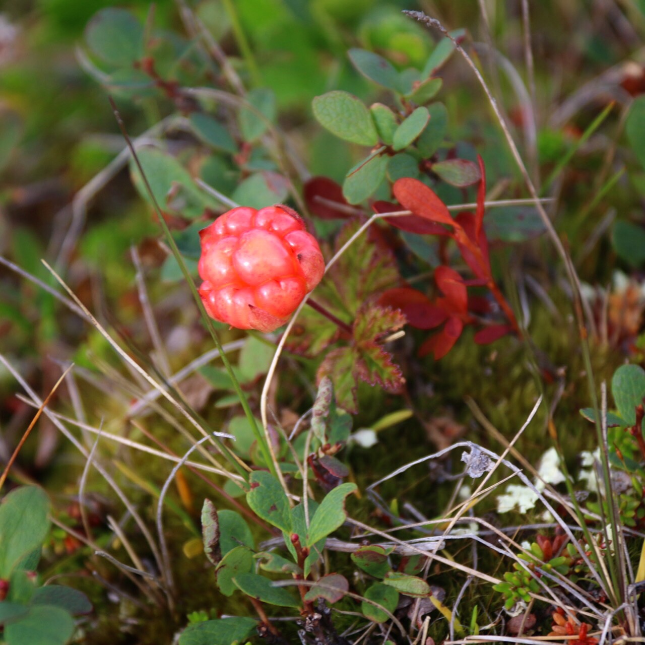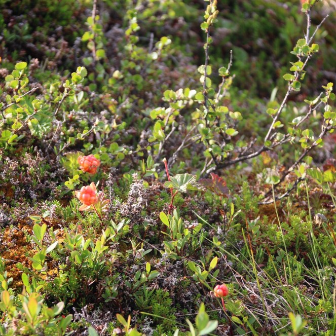 Nåja. Att plocka hjortron är alltså något av det jag kan sakna från mina gamla hemtrakter när jag nu bor i Blekinge. Men när vi vandrade i Abisko kom vi på en fantastisk hjortronmyr. Tyvärr, eller kanske som tur var, hade jag inte med mig några kärl att plocka i. Men eftersom bären fortfarande var mer röda än gula kunde jag nypa med mig fem bär i fickan och låta dem mogna över natten i rumsvärmen i stugan. Alltid något.