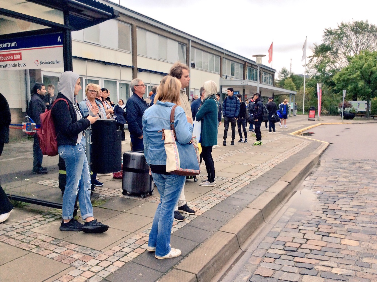 Här står många pendlare hela morgonen. Efterhand droppar de av. Ordnar transport själva. De flesta tar väl bilen gissar jag. Min familj har bara en bil och den är med min sambo på hans jobb i Ronneby.