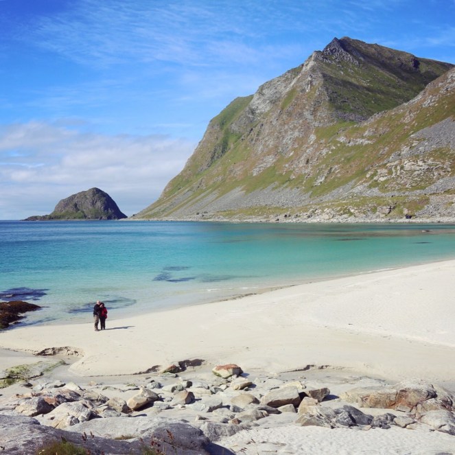 Vi drog vidare med tåg till de svenska lapplandsfällen. Till ljuset. Det var ljusare här uppe i augusti än hemma i Blekinge vid midsommartid. Vi vandrade i Abisko och åt gott. Kollade in alla sommarblommor i skidbackarna i Björkliden. Åt gott där också. Fortsatte med tåg till Narvik där vi brsökte krigsmuséet. Där trillade pengen ner. Plötsligt förstod jag varför Narvik är så fult, trots att det ligger så naturskönt. Det blev ju sönderbombat under kriget. På grund av den svenska järnmalmen. Sedan körde vi bil ut på Lofoten och bodde tre nätter i stuga där vid en mycket vacker strand. Vattnet var turkost men iskallt. Sedan åt vi lunch i Oslo innan vi flög vi till Sardinien. Där var vattnet också turkost. Men betydligt varmare.