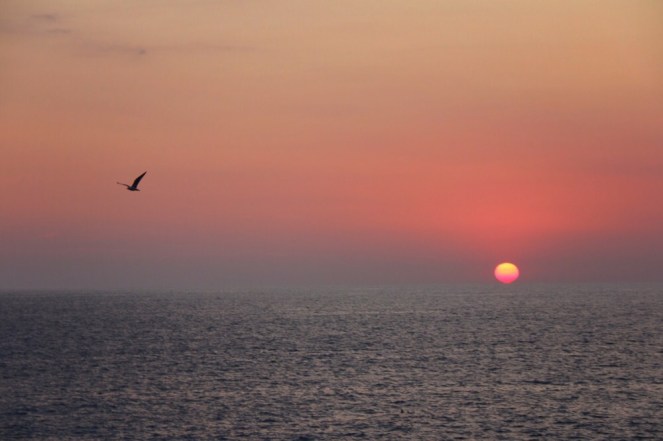 Vi följer strömmen ner mot hamnen. Jag stannar och fotograferar. Plötsligt är de andra borta. Det är gott om andra turister nere vid vattnet. Och solnedgången är redan vacker. Ganska snart får jag ett SMS från ”General Squirrel”. Det är min förstfödde som lyckats döpa om sig till det i min mobil, jag har aldrig riktigt begripit hur han gjorde, men kanske är det för att jag och pojkarna har gemensam Apple-Id? ”Var är du?” undrar han. ”Vid havet. Och ni?” svarar jag och sedan dyker de upp alldeles intill mig. De har köpt glass visar det sig. Jag vill också ha en. Jag köper min på vägen tillbaka. Men först ser vi solen gå ner bakom horisonten.