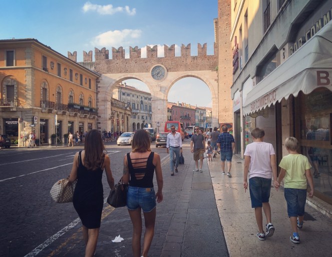 I Verona hade jag lyckats boka in oss i en lägenhet som låg en bit ifrån hotellet som den hörde till, men där den inkluderade frukosten serverades på hotellet. Det var väl inte helt praktiskt men lägenheten var fin och frukosten god. Från Verona blev det aldrig något blogginlägg. Jag hann aldrig. Det borde nog göras ändå. Så här i efterhand. Verona är ändå Verona. Även om idén om en verklig balkong utsedd till en fiktiv, där den litterära gestalten Julia skulle kunna tänkas ha stått om hon funnits i verkligheten, känns aningen… Ska vi säga ”krystad”? (De fick väl helt enkelt klämma fram en balkong från 1500-talet när turister ständigt frågade efter den.) Hur som helst en fin stad, även om vi nog började bli lite mätta på fina städer vid det här laget.