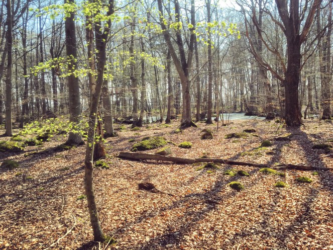 Träden har precis börjat slå ut. I bokskogen fungerar det så att de små träden slår ut först innan de stora jättarna väcklar ut sina lövverk. Jag tänker att evolutionen har ordnat det där bra. På så sätt får de små chansen att fylla på med lite extra energi innan de stora träden skuggar bort det mesta av solljuset. De stora och starka står tillbaka några dagar till förmån för de mindre och svagare. Till gagn för artens överlevnad. Det är vackert.