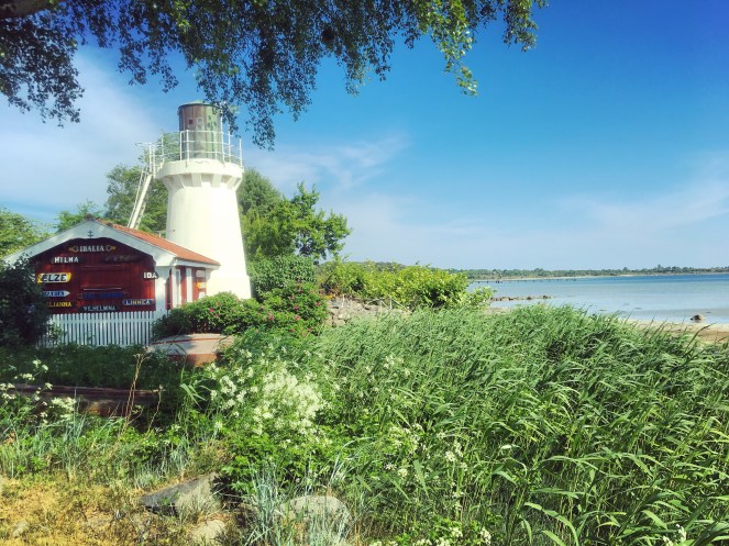 Efter lunchen promenerade vi förbi fyren Helleviks Ledfyr , även kallad ”Dän wide gåbben”, som uppfördes 1892, och vidare förbi Hanöhus. Det senare byggdes vid mitten av 50-talet och byggdes om och ut i slutet av både 60- och 70-talet. Hanöhus har varit hotell, konferensanläggning och danshak. Sedan flyktingförläggning. Och nu är det precis på gång att åter öppna som restaurang och nattklubb.