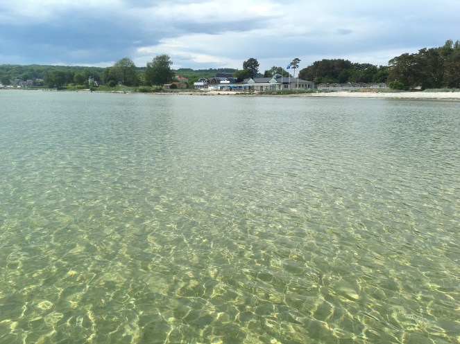 Jag provade att vada lite i vattnet med kläderna på. (Shorts.) Och det var faktiskt ändå inte så jättekallt där inne vid det allra grundaste.