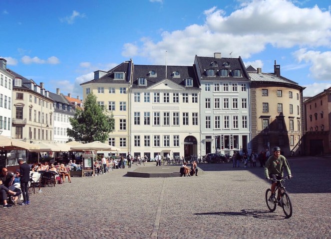 Vi passerar Vor Frue Kirke, som är Köpenhams domkyrka sedan stiftet inrättades 1922, och kommer in på Nytorv. Vi korsar det berömda promenadstråket Strøget innan vi slår oss ner på en uteservering på torget. Jag tar två smørrebrød, en med avocado och en med räkor. Pojkarna äter hamburgare, barnportion och Anders tar en större variant. Med måltidsdrycker till kostar det oss runt tusen svenska kronor.