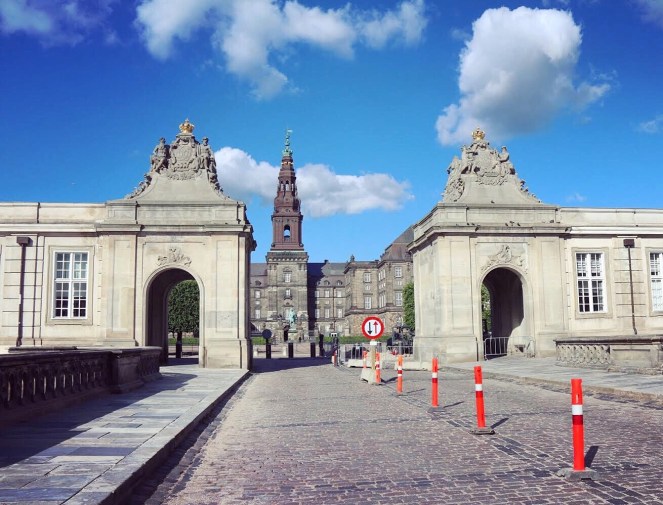 Efter maten fortsätter vi vår promenad. Vi kommer förbi Christianborgs slott där folketinget, danmarks riksdag, numera håller till. Även statsministern har sitt kansli här. Maktens boning.