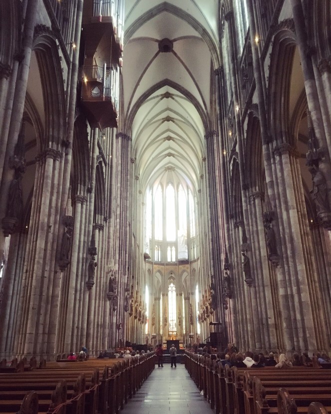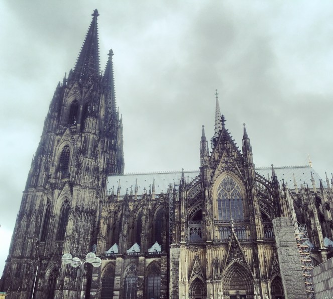 Efter att ha anlänt sent på kvällen och sovit en natt på hotell har vi en förmiddag i Köln. Jag tror att det räcker. Vi har sett både Kölnerdomen och Rhen och läst på om stadens historia. Stadens namn är till exempel ett missförstånd. Och stadens ”medeltida” kyrka är till stor del från 1800-talet.