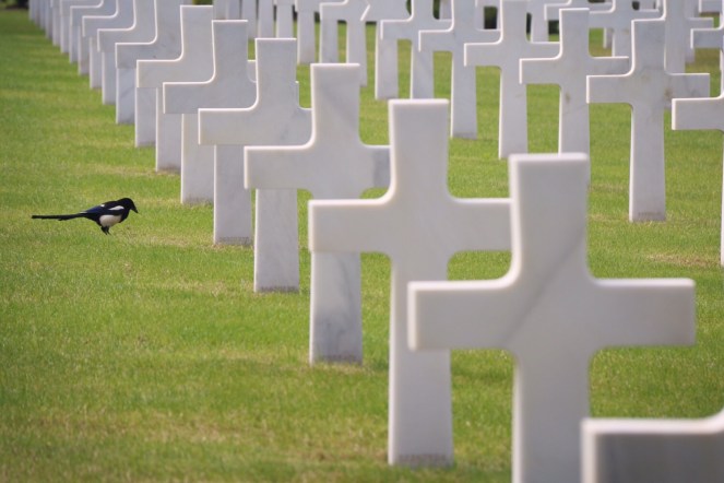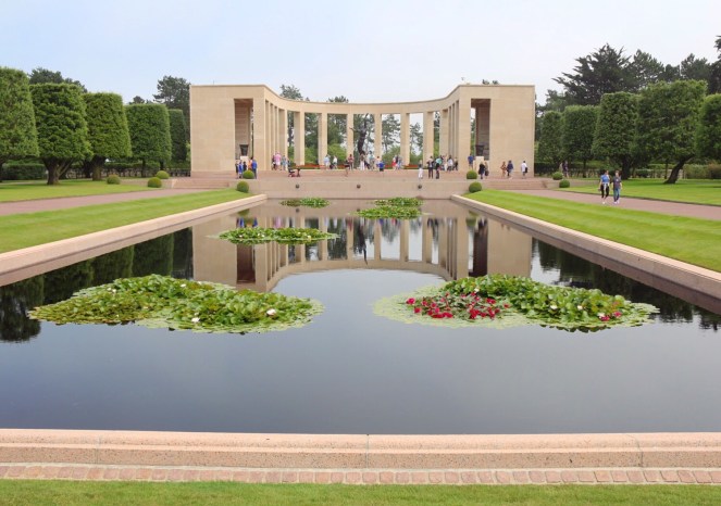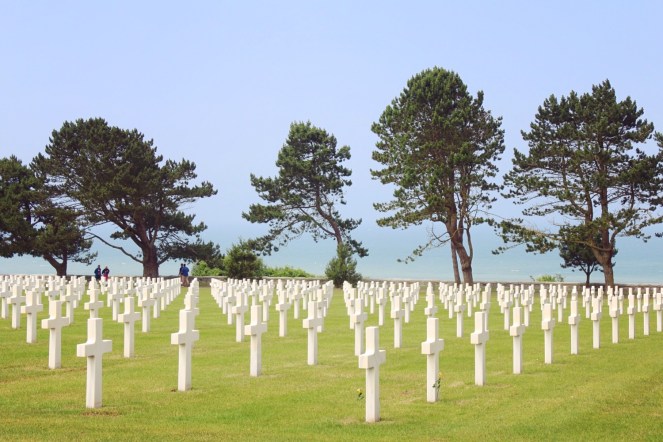 Vi fortsätter till Cimetière américain de Normandie i Colleville-sur-Mer. Den amerikanska krigskyrkogården. När vi kommer till platsen spelas den amerikanska nationalsången med något slags klockspel och en kransnedläggning pågår. Vi tittar sedan på alla gravarna. Kors i mängder och en och annan davidsstjärna. Vi tar in vidden av dödandet. Och sedan åker vi tillbaka till Houlgate. Vad mer kan vi göra?