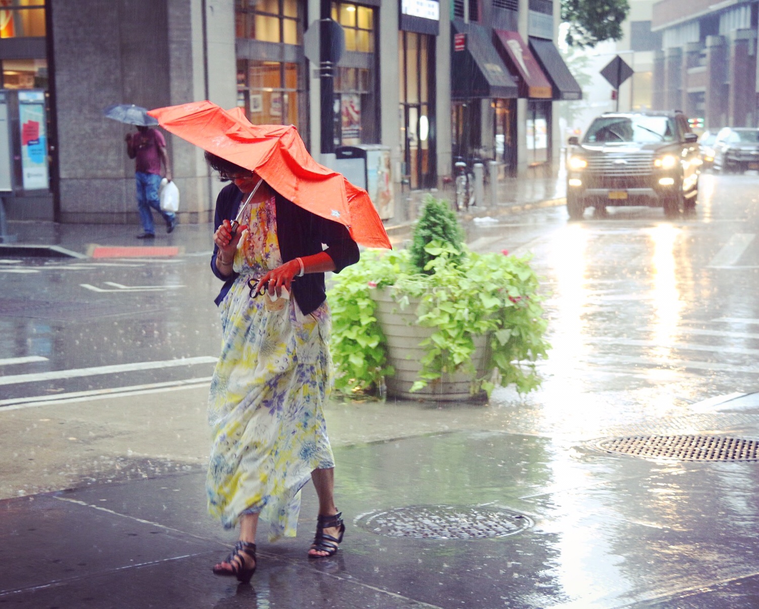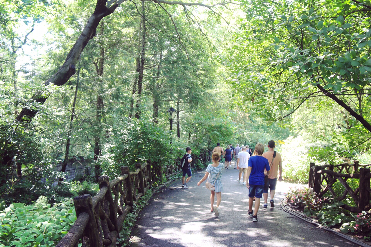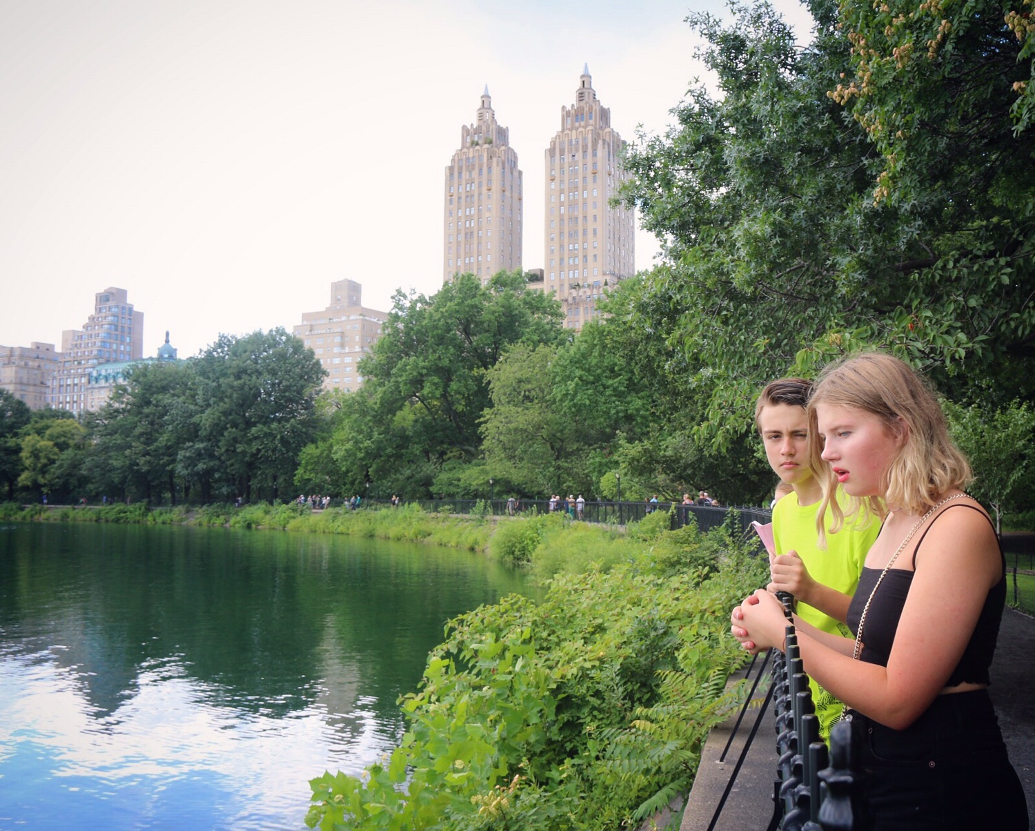 Flera gånger under vår vecka i New York regnar det. Ibland är det mulet. Men oftast skiner solen. En eftermiddag vandrar vi längs High Line. Det blir riktigt varmt i solen. En annan eftermiddag vandrar vi genom Central Park. Luften är het och fuktig. Det känns nästan som om vi vandrar i en djungel. I en damm simmar sköldpaddor. Vi stannar först för att köpa glass och sedan för att ta något att dricka. Värmen tar på krafterna. Vi bestämmer oss för att ta tunnelbanan tillbaka till hotellet. Inomhus är det nämligen svalt. Nästan för svalt ibland. Amerikanarna sparar nämligen inte på luftkonditioneringen. Det kan därför vara lite knepigt att klä sig när du växelvis ska vara både ute och inne. Utomhus pustar du över värmen och inomhus fryser du nästan.
