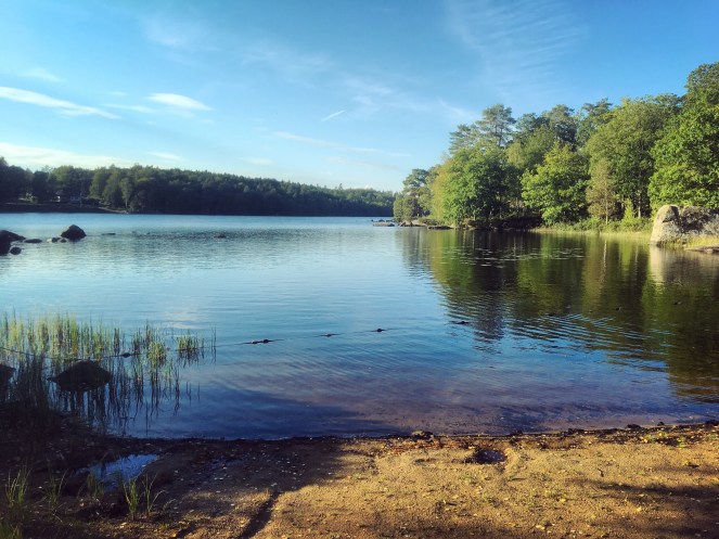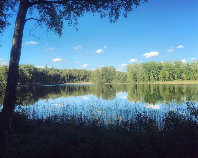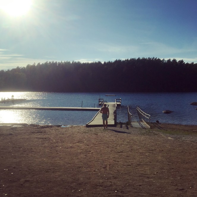 Och här brukar sommaren vara till halva september. Efter promenaden i söndags tog vi ett sista dopp i Långasjön för den här sommaren.