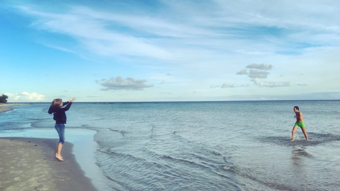 Men vi hann först med en promenad längs den fina stranden vid Äspet på den fina Åhuskusten. Till Revhaken och tillbaka.Vår förstfödde var den enda i sällskapet som fick för sig att bada. Lillebror hejade på.
