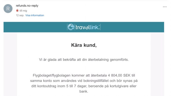 Det senaste beskedet jag fått var den 12 september. Särmdumpen ser du ovan. Jag skulle ha pengarna på mitt konto inom 5 till 7 dagar. Det är nu den 24 september. Men pengarna har fortfarande inte kommit.