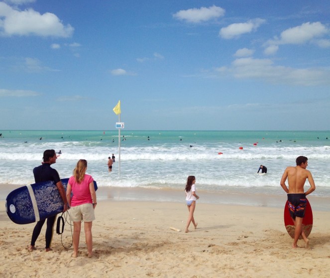 På stranden hade jag hel baddräkt, men jag tror att det går bra med bikini också. Topless är knappast vare sig tillåtet eller tillrådligt. Det råder fotoförbud på vissa stränder.