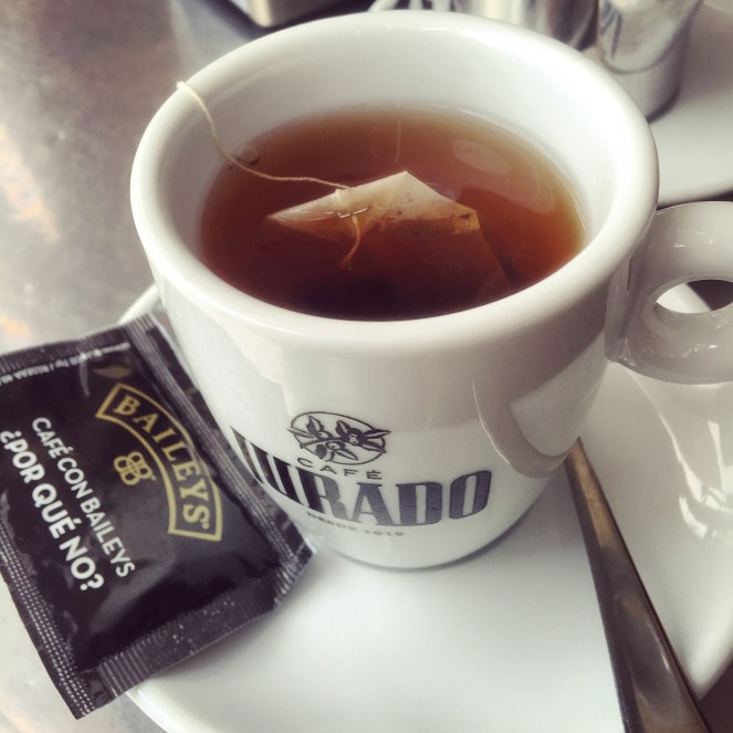 Vi har promenerat in till stan, fikat, promenerat runt i stan och ätit tapas till lunch. Det regnar mer och mer. Vi bestämmer oss för att ta en taxi tillbaka till det ytterområde där vi bor.