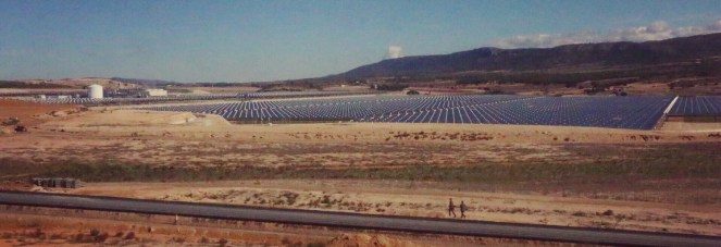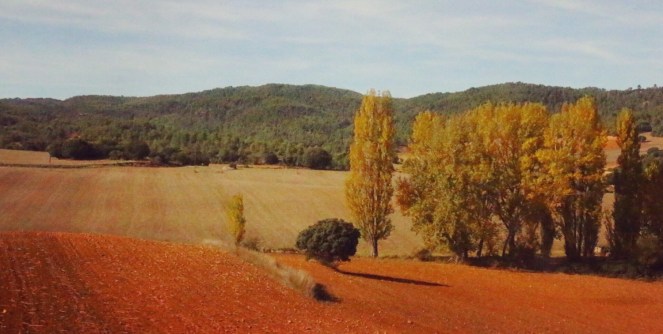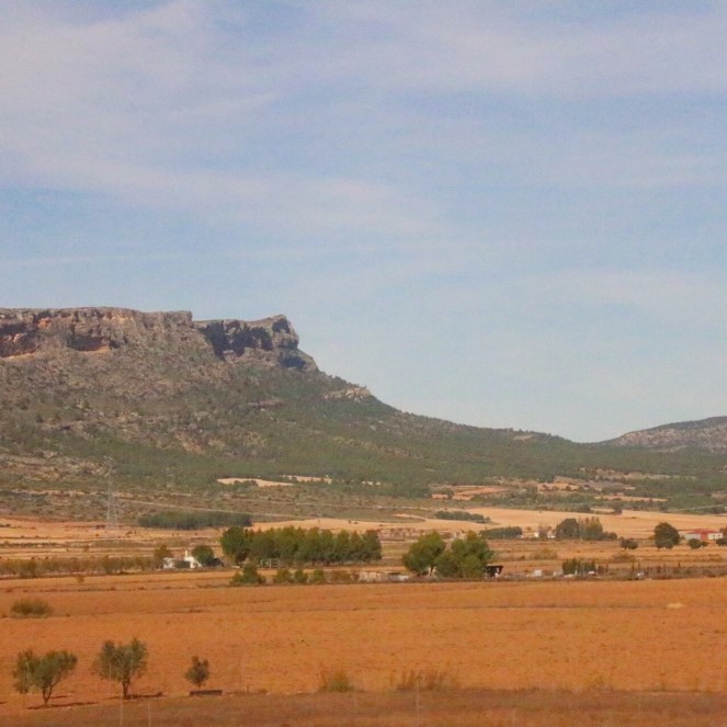 Vi åker tåg från Alicante till Madrid. Spanska landskap passerar förbi utanför fönstret.