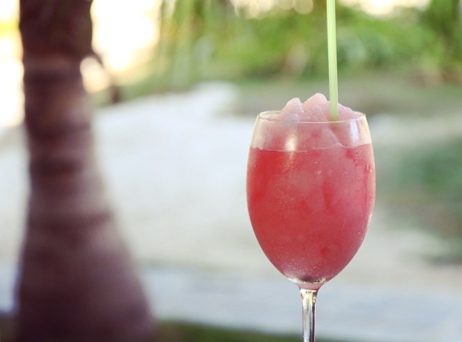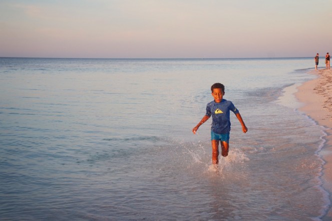 1. I och med att sanden är så finkornig blir vattnet närmast stranden lite grumligt. Som du ser på bilden där jag snorklar så är vattnet betydligt klarare bara lite längre ut. Tyvärr finns där ju ändå inte så jättemycket att se…