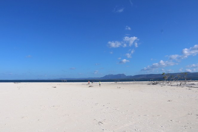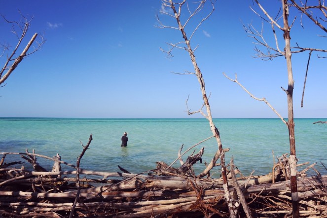 Om du promenerar österut längs stranden kommer du snart till ett parti med död skog. Mest troligt är det mangrove som har växt här och sedan dött. Kanske har grundvattennivån sjunkit? Det är lite halvt kuslig stämning. Stinkande dypölar och mssor av döda träd. Men på andra sidan den döda skogen finns den stora östra stranden.
