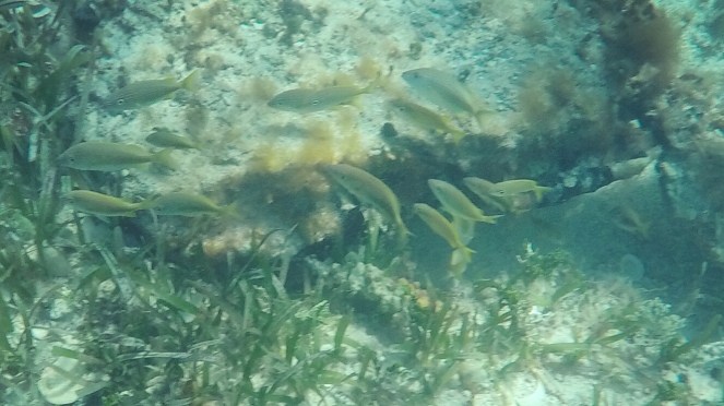 Så här i efterhand ångrar jag att jag inte någon förmiddag följde med dykbåten ut för att snorkla på revet utanför ön. Även om det kostade extra och även fast ingen annan i familjen ville. Att snorkla direkt från stranden gav nämligen inte så mycket. Jag såg i och för sig en rocka, ett par stora röda sjöstjärnor och ett par stim med fiskar. Men mest av allt såg jag sjögräs. Massor av sjögräs.