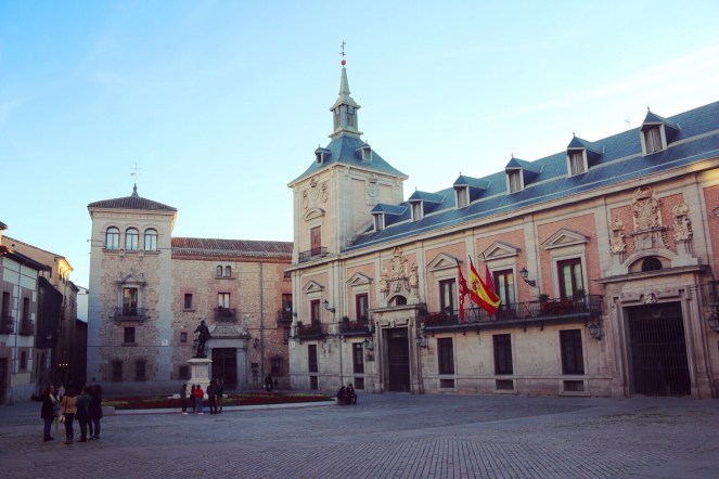 När vi väl installerat oss på hotellet går vi en eftermiddagspromenad i centrala stan. Det är nu som vi kommer förbi Puerta del sol. Sju år senare. Vi fortsätter längs gatan Calle Mayor och tar en eftermiddagspaus på det stora torget Plaza Mayor. Vi fortsätter sedan längs samma gata och passerar först genom en saluhall och sedan förbi Plaza de la Villa. Ett gulligt litet torg omgivet av hus i olika stilar, som lämpar sig väl att fotograferas. På torget finns också en staty av Álvaro de Bazánen, en militär som levde på 1500-talet och vars berömmelse grundas i att han, trots en lång karriär, aldrig blev besegrad.