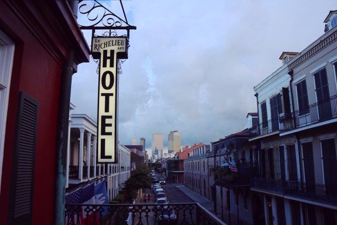 Vi har haft en hektisk resesommar hittills; tågluff till Frankrike med båtutflykt till Jersey, en vecka i New York med utflykter till Washington D.C och Niagarafallen. I New Orleans gör vi bara nån enstaka utflykt för att se alligatorer. Annars tar vi det lugnt. Promenerar lite i staden, äter gott, och så hänger vi mycket vid hotellpoolen. Le Richelieu in the French Quarter visar sig vara ett utmärkt ställe för den aktiviteten. För även om poolen är ganska liten så är vi oftast ensamma eller nästan ensamma där. Det är lugnt och skönt. En bra plats för vila.