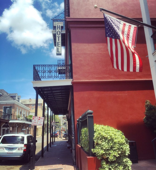 Fem nätter fick det bli i de franska kvarteren i New Orleans. Vi bodde på hotell ”Le Richelieu in the French Quarter” som ligger ett par kvarter ifrån French Quarters sydöstra hörn där Esplanade Avenue möter Mississippi-floden och spårvagnshållplatsen ”French Market Station” ligger.
