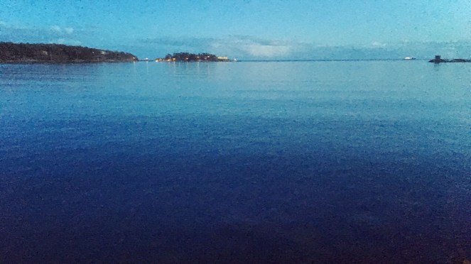 Ön på bilden heter Ortholmen. Här sedd från Östa Piren i Karlshamn, Blekine i måndags kväll.