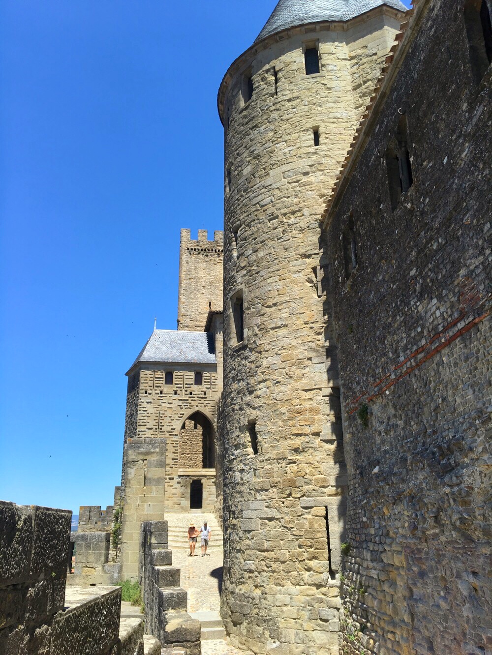 På håll ser den gamla befästningen ut som en vy ur en medeltida saga. Carcasonne heter staden i södra Frankrike som kanske just därför är så känd för sin världsarvsklassade gamla stad och ringmur. Som är en blandning av lyckat fejk och äkta vara. De nedersta delarna av muren och det äldsta tornet är från romartiden och sedan har anläggningen byggts till och byggts om i så många historiska vindlingar att det inte går att hålla reda på allt. Det är kungar och krig mellan olika kristna inriktningar och belägringar och en gris som kastades ut över muren och… Det går, som sagt, inte att hålla reda på allt. Men vackert är det.