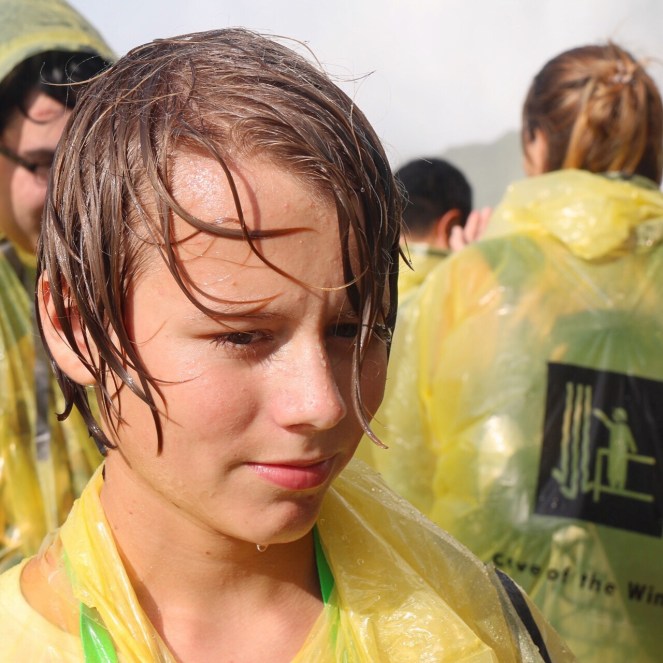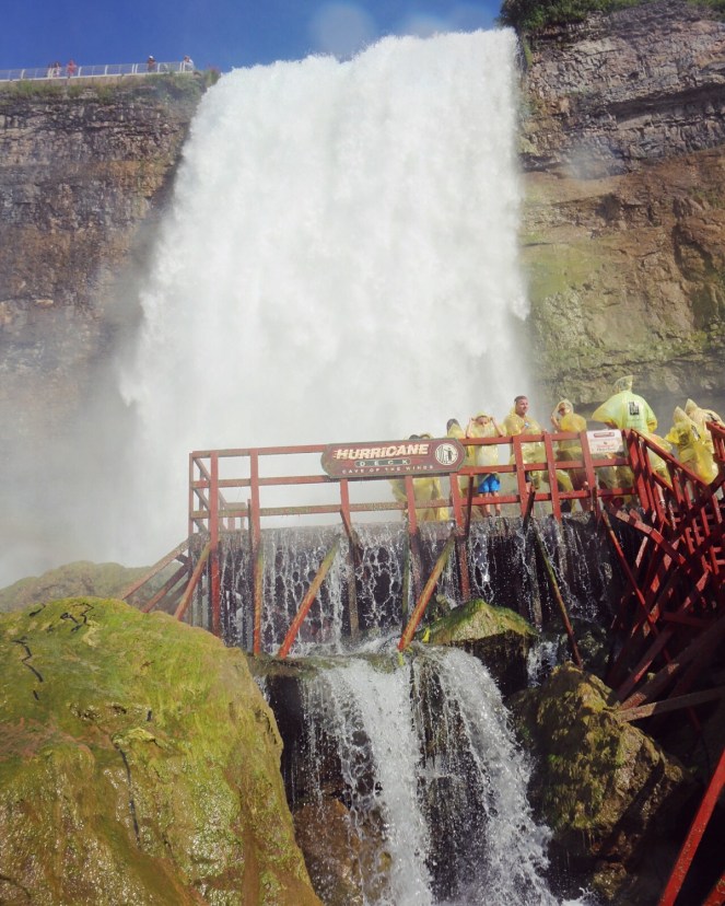 Sedan tar du på dig de sandaler av plast och den tunna poncho som ingår i avgiften, tar hissen ner och går sedan på gångbanor och trappor av trä som tar dig upp till häftiga ”Hurricane Deck” där du upplever vad som närmast kan liknas vid en tropisk storm. Och den vinden blåser även under de lugnaste dagar eftersom den genereras av det fallande vattnet.