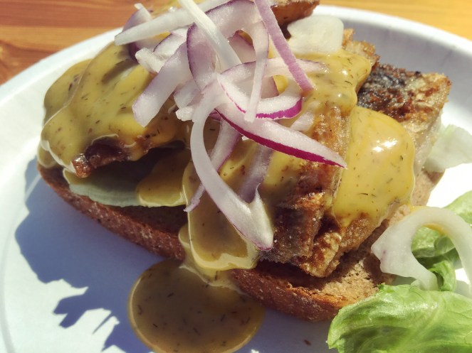 Nere vid hamnen inne i själva stan finns en så kallad ”food truck”. Närmaste adress är Hamngatan 5. Du kan också söka på ”Sillavagnen” på Google. Här får du den istället serverad som på bilden ovan, på limpa. Det tycker jag är godare. Men båda funkar.