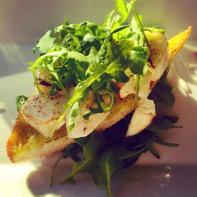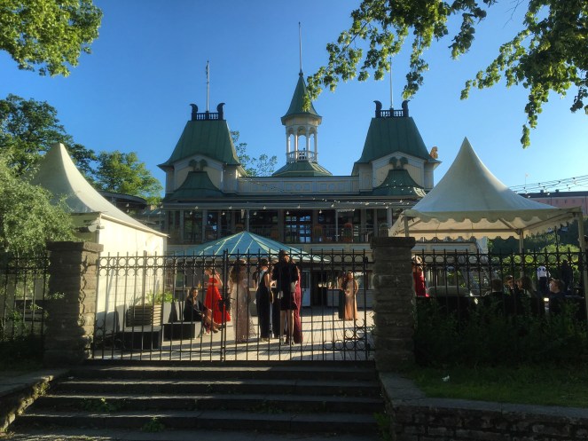 En varm kväll där många ungdomar festar i fina kläder och där jag först går en promenad innan jag äter en macka med chèvre, en liten rödbeta, ruccola, valnötter och honung på Hamnpaviljongen. Det är egentligen en förrätt, men jag nöjer mig med den.