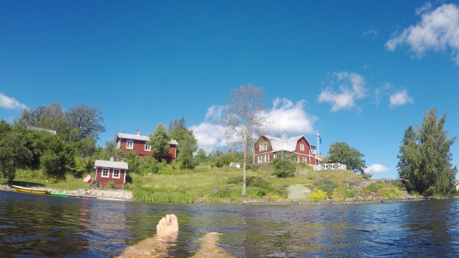 Nej, ingen insjö men väl en inå. Ljuvlig även den att flyta på rygg i. Risken är väl bara att om man slappnar av för mycket så kanske man har flutit för långt. Under barndomen hade jag en underbar insjö i grannlandet, Uleträsk, helt privat badstrand. Den kan jag sakna ibland.