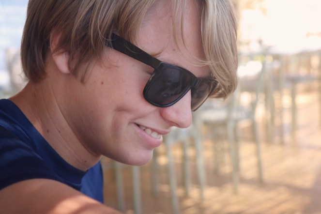 Katten som först bytt sovplats till en stol hoppar nu upp på muren och sätter sig intill Anders. Jag och pojkarna tycker att katten ser ut som en sur gammal gubbe och Anders frågar katten: ”Var det bättre förr, tycker du?” Då stryker katten sitt huvud mot Anders axel. Det är precis som om den äntligen har hittat någon som förstår. Vi skrattar gott.