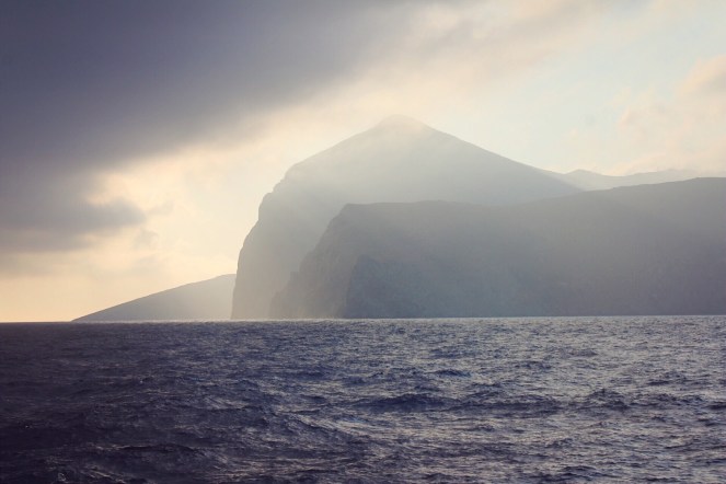 Ett mörkt moln seglar in över den grekiska ön Amorgos just som vi lämnar ön. Det blåser och havet guppar. I just det ögonblicket har vi på ett guppigt hav vi lämnat Greklands förmodligen vackraste ö bakom oss, men har fem dagar av vår resa kvar, på öarna Donousa och Paros, att se fram emot.