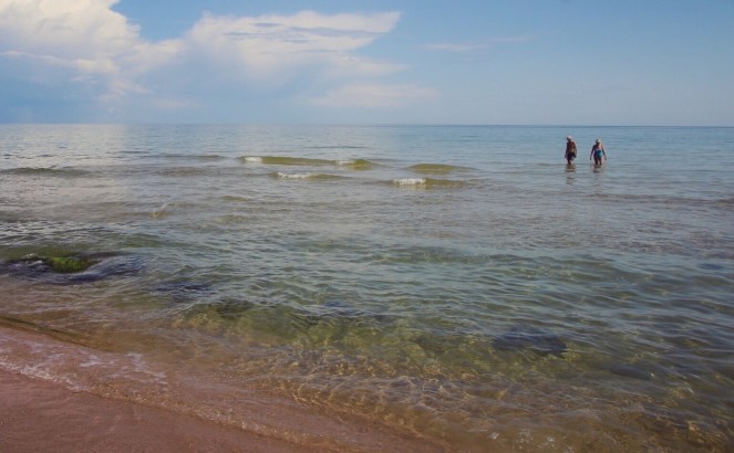 Det är ganska långgrunt. Lite längre ut är vattnet något svalare, men inte kallt. Medan jag långsamt simmar tillbaka in mot land tänker jag att det är förvånansvärt lite folk på stranden, så här bara några hundra meter från där gångstigen kommer ner från nationalparkens entré. Inte för att vi är helt ensamma, men det är heller verkligen inte någon trängsel. Ganska märkligt med tanke på att det är i början av augusti, solen skiner och att den här stranden, mellan Stenshuvud och hela vägen till Knäbäckshusen, är enligt mitt tycke Sveriges vackraste strand.