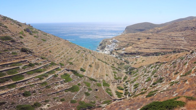 Terassodlingar har anlagts på sluttningarna runt Agkali, på västkusten.