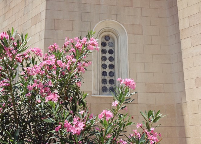 2. Den vita jagade jag i Spanien, nöp skott här och var men fick dem inte att rota sig, det var väl fel tid på året. Har haft några stycken men de har gått hädan. Vacker bild med rosa mot kyrkfönstret! Kommer på att mamma och pappa hade en gigantisk oleander på framsidan av sitt Spanienhus.